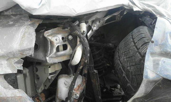 The vehicle has been damaged considerably with the front left tyre broken and rear right side receiving destruction. The positive side from the crash proves the strong build quality of the Hexa.
